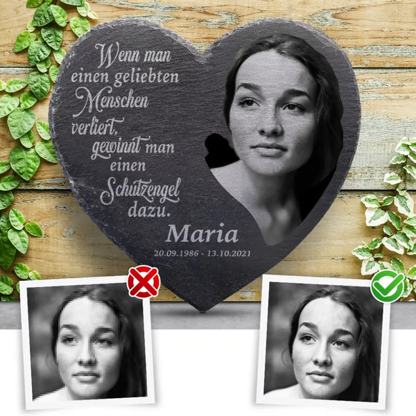 Unsere Schutzengel - Personalisiertes Trauer Schieferherz für 2 Personen