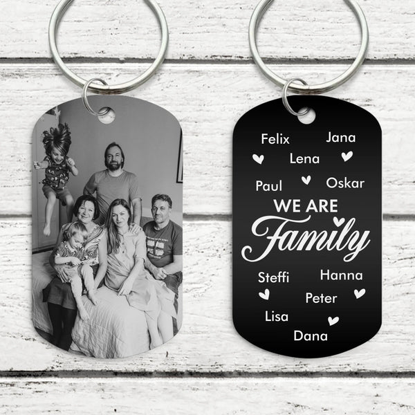 We are Family - Familien-Schlüsselanhänger (Gravur - schwarz/weiß)