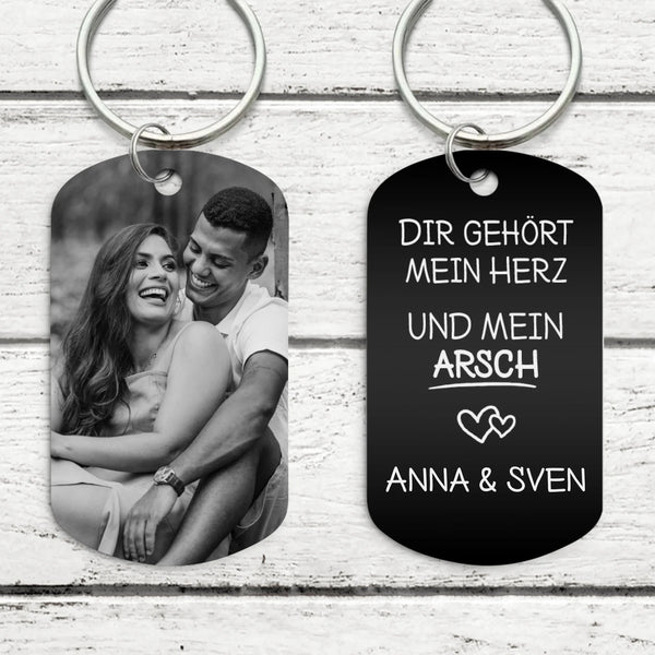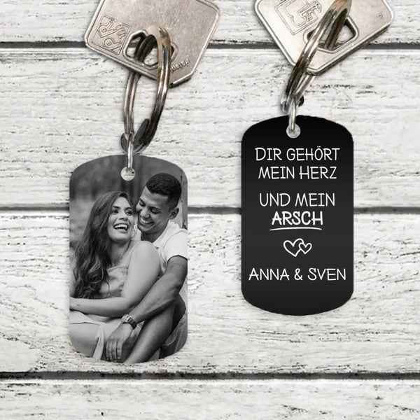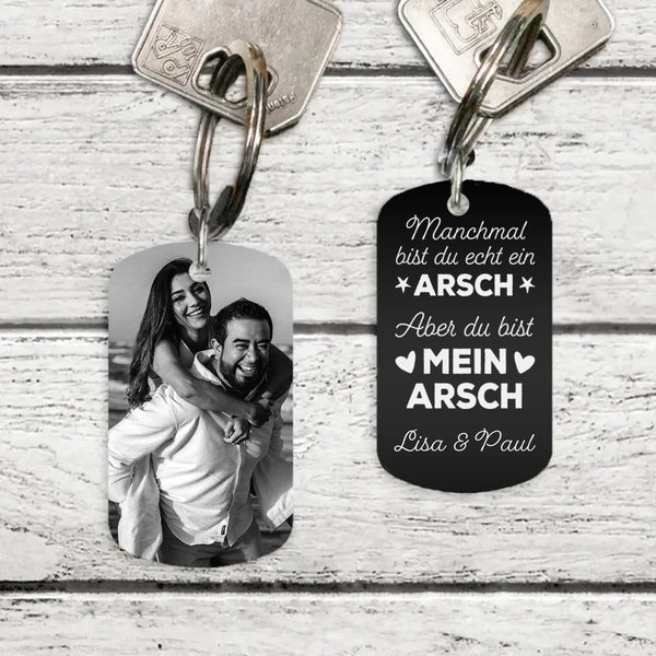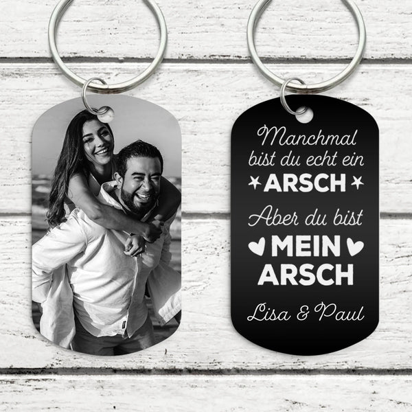Mein Arsch - Paar-Schlüsselanhänger (Gravur - Schwarz/Weiß)